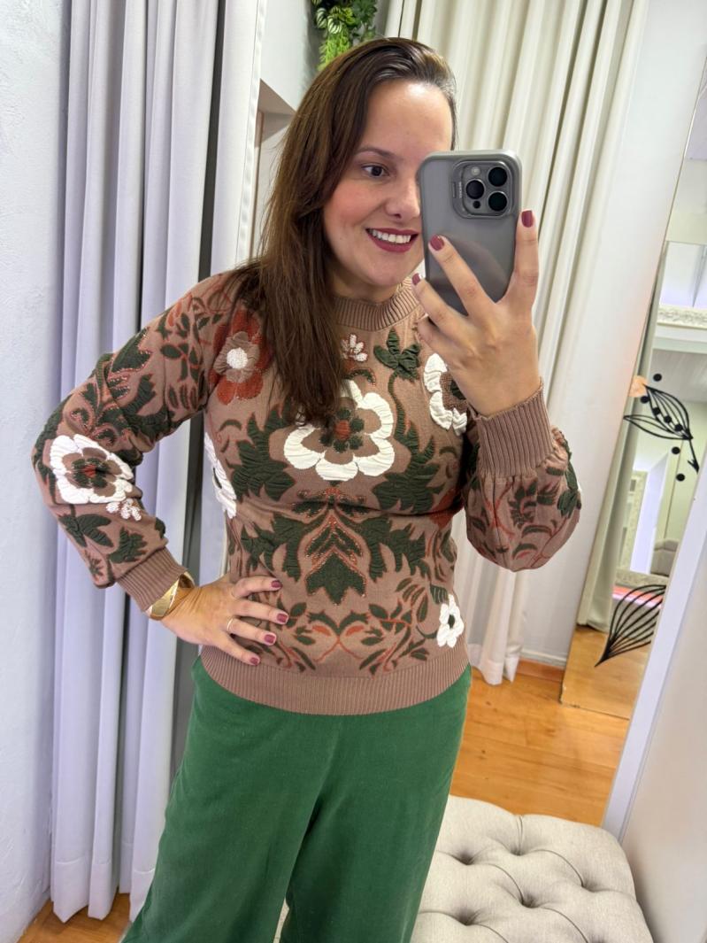 blusa arabescos florais - M - capuccino - canelan trico