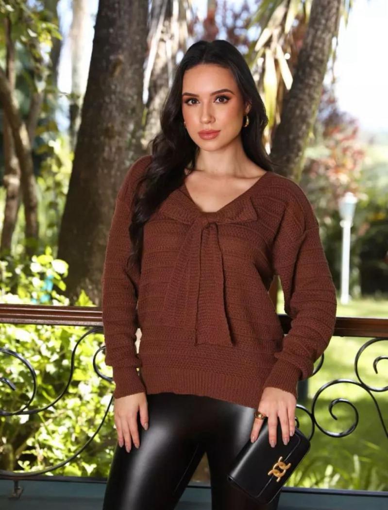 blusa laço trico - M - terra cota - canelan trico