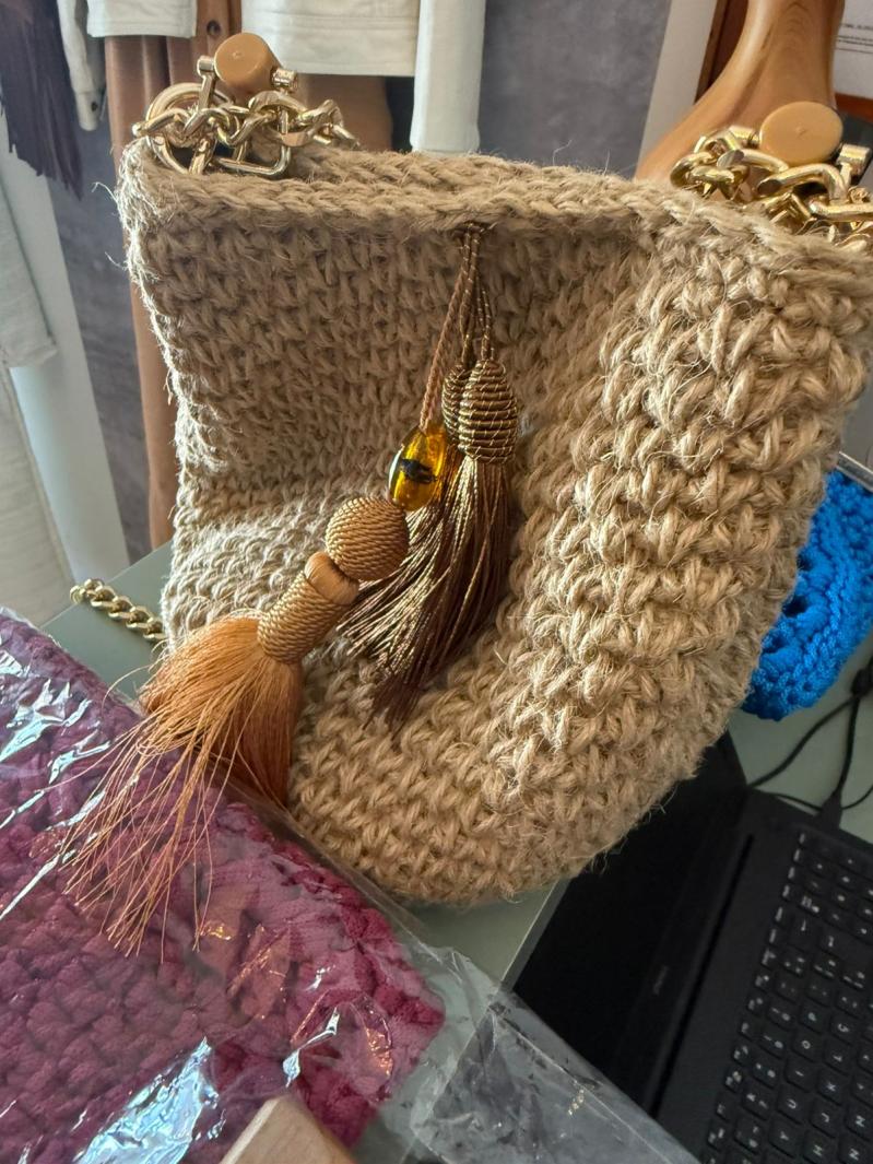 bolsa croche bege - artlu